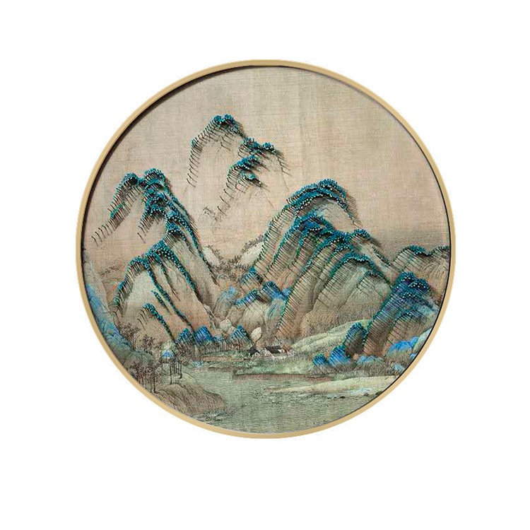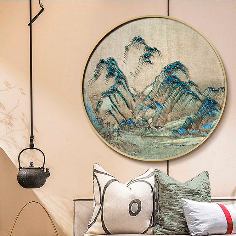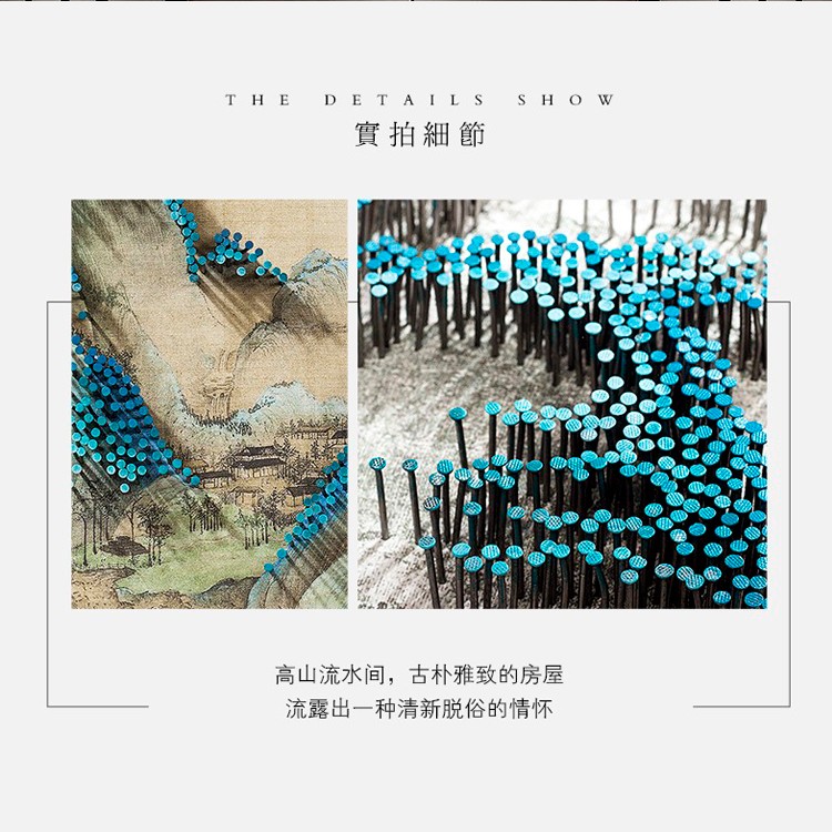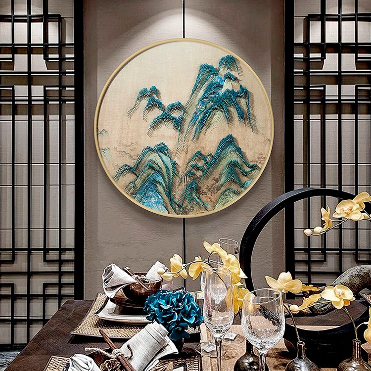 新中式客廳禪意裝飾畫立體手工山水圓形釘子畫樣板房過道掛畫壁畫