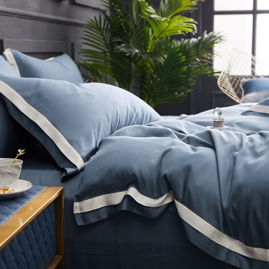 床上用品 純棉四件套 蕾絲工藝 60天絲純色工藝系列 石青