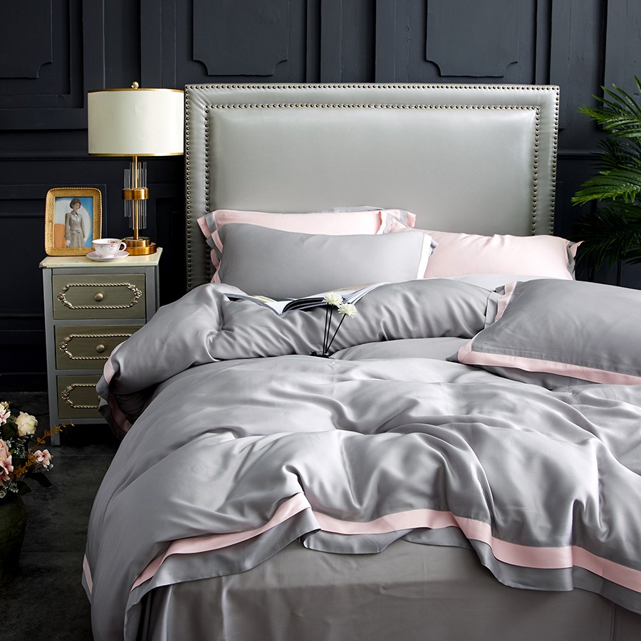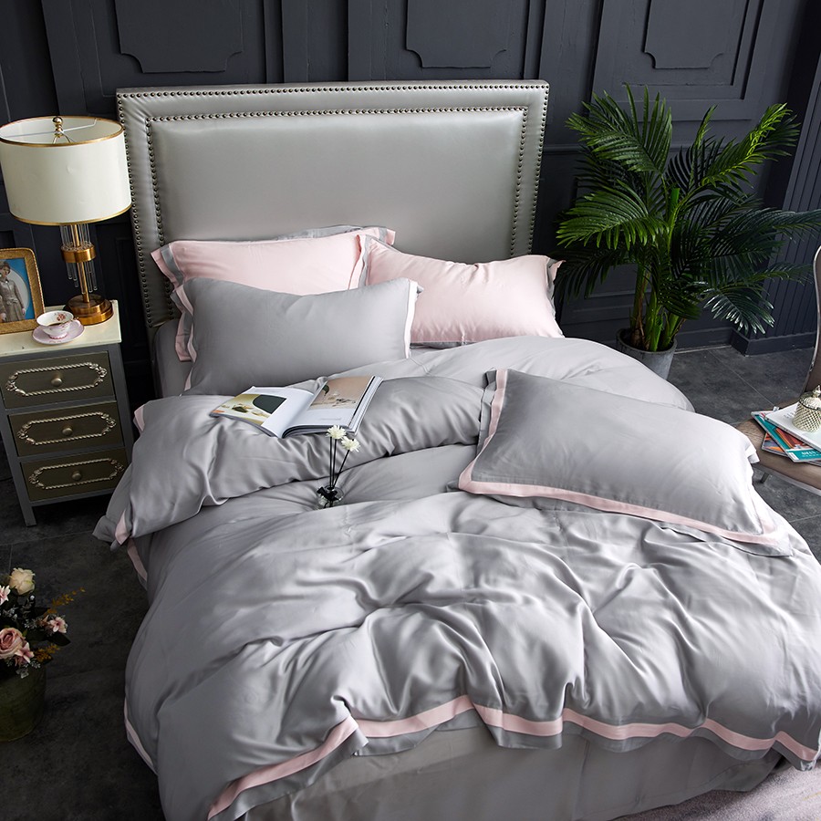 床上用品 純棉四件套 蕾絲工藝 60天絲純色工藝系列 淺灰